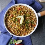 -In a pressure cooker,add black eyed beans,salt,water & mix well,cover & pressure cook for 12-15 minutes then strain & set aside.
