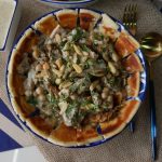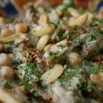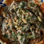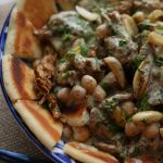 In serving bowl,add chickpeas,pita bread,cooked & shredded chicken,fried almonds and drizzle prepared yogurt sauce and garnish with fresh parsley & serve!