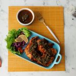 Grilled glazed chicken per chimichurri sauce dal ker serve karein.