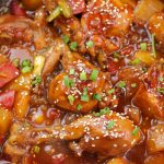In a bowl,add gochujang paste,soy sauce,hot sauce,oyster sauce,garlic,sugar,red chilli crushed, chicken powder,water,whisk well & set aside.