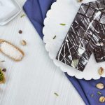 -Add & spread prepared kunafa stuffing evenly in one mold & add melted chocolate on the sides of mold to create sealing & flip another chocolate mold on it.