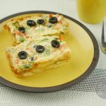 Pour the mixture in the tray compartments and put cheese and few olives on top of it.