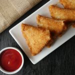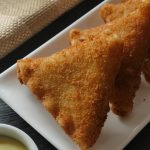 Now coat samosa into fry flour mixture then dip into beaten eggs and coat in breadcrumbs (makes 12-15).