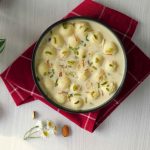 -In boiling milk,add prepared balls & cook on very low flame until they float on the surface & increase in size (don’t stir),cover & cook on low flame for 10 minutes.
