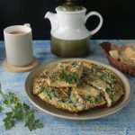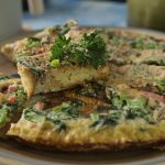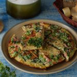 Serving plate per omelet ko flip ker lein aur slices mein cut ker ka serve karein!
