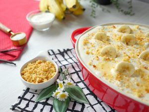 -Traditionally Nilla wafers are used.Substitute can be pound cake, shortbread cookies or butter cookies.