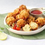 -Now coat chicken ball with bread cubes & press gently to set the shape.