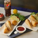 Take samosa wraps,apply flour paste and make pocket,add chicken filling in the center and fold into the shape of cone and apply flour mixture on the edges and bring the edges together and seal the edges properly (makes 14-15).