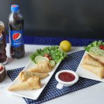 Manda patti lein aur maida ka paste laga ker pocket bana lein aur chicken filling ko center mein bhar dein aur cone ki shape bana lein aur corners ko maida ka paste sa seal ker lein (makes 14-15).