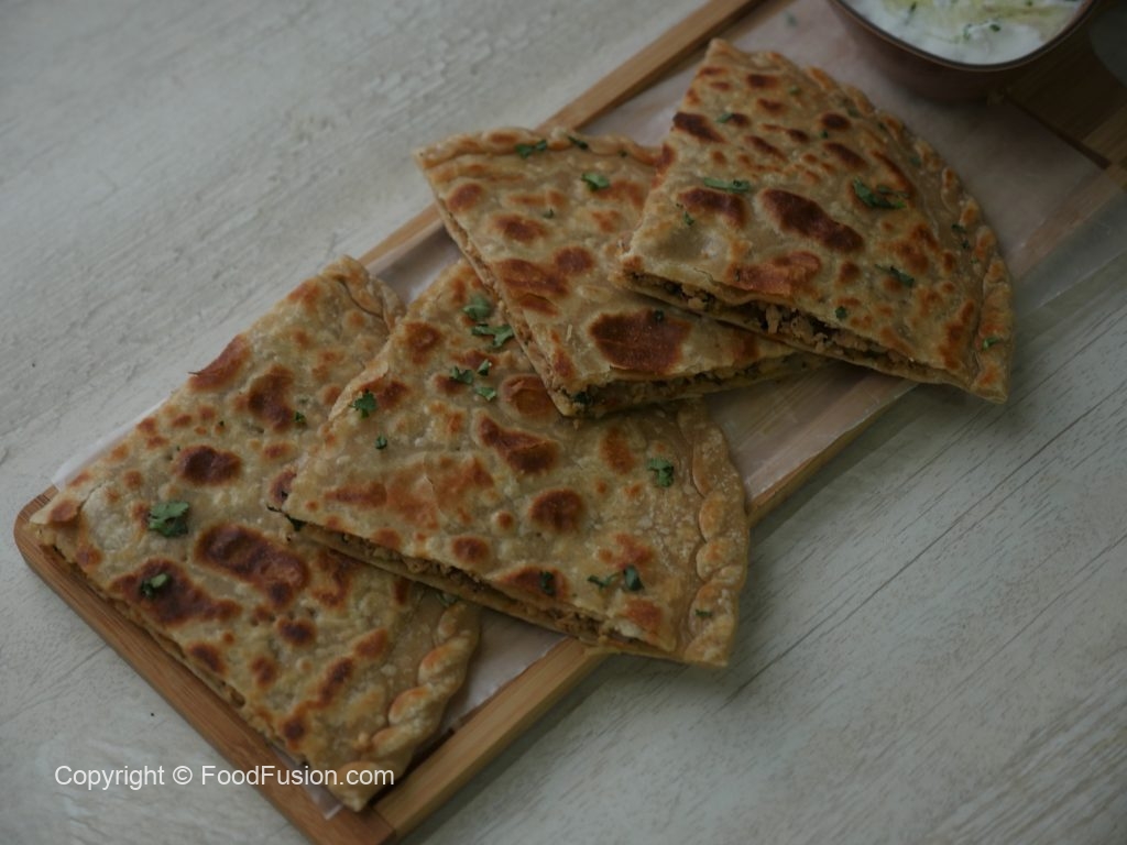 Dough ko dubara ghond lein,haath ok oil sa grease karein aur chota dough la ker ball bana lein,atta chirak dein aur rolling pin ki madad sa bail lein.