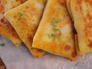 -Frying pan mein cooking oil aur whisked anday dal ker evenly pheela lein aur dono sides sa paka lein & side per rakh dein.