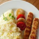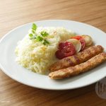 Serve chelo kebabs with butter rice,onion and tomatoes.