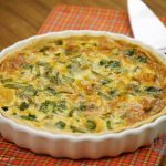 Pour egg mixture and bake in preheated oven at 180 C until crust is golden brown.