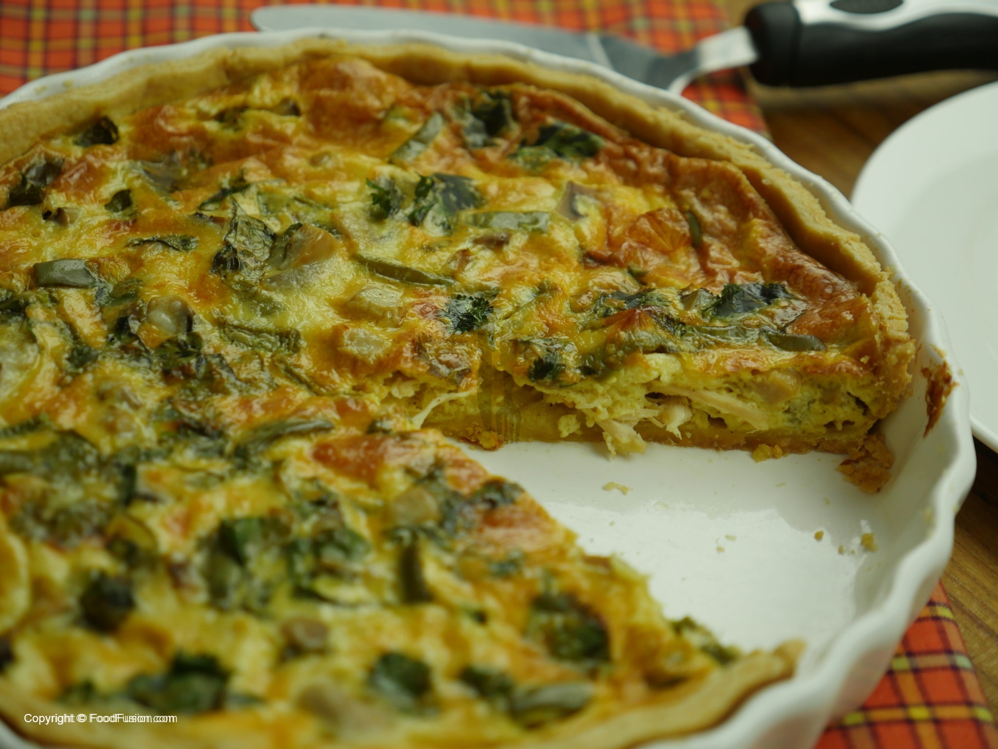 Egg mixture ko pour karein,preheated oven mein 180 C per crust golden brown hunay tak bake ker lein.