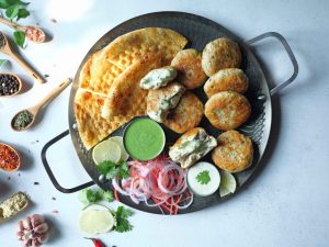 -Serve with prepared yogurt green sauce!