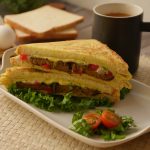 On a griddle,add cooking oil & pour whisked eggs and spread evenly.