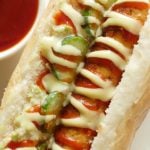Boiling water mein tayyar sausages dal ker 8-10 minutes kliya boil ker lein aur foran ice chilled pani mein dal ker 5 minutes kliya chor dein phir cling film ko nikal lein.