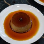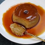 -When ready to serve,run a knife around the edge & then invert onto a serving plate.Smack the top of the pan to loosen the flan & then lift up the cake pan.Slice it up & serve!