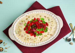 -Decorate with whipped cream,red & green jelly,pistachio,almonds & serve chilled.