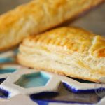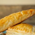 Roll out puff pastry,cut in desired shape with cutter,egg wash,add egg and cheese filling,fold and gently press with fork to seal and egg wash again.