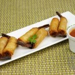 Take spring roll wrap and place prawn, slightly fold the sheet and roll the prawn and apply flour mixture.