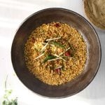 -Add ginger garlic paste,pink salt & mix well,cover & cook on low flame until 90% done (9-10 minutes),strain & set aside.