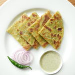 In bowl,add wheat flour,ghee,salt,blended green mixture and mix well.