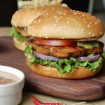 On burger bun,add & spread bbq burger sauce,lettuce leaves,onion rings,chicken chapli kabab,tomato slice and prepared chatpati hari chutney.
