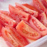 Tamatar ka head remove ker lein aur wedges or cubes mein cut ker lein.