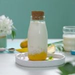 -Glass bottle mein tayyar mango puree (2-3 tbs),boiled sagudana (2 tbs),condensed milk mango chunks,ice cubes aur doodh dal ker stir ker lein & serve karein!