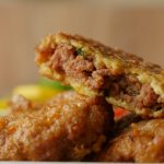 In wok,heat cooking oil and fry kabab on low flame from both sides until golden brown while pouring whisked eggs on each side of kababs.