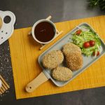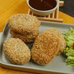 Japanese croquettes ko Tonkatsu sauce ka saath serve karein.