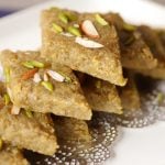 Mithai ki consistency check karne k liye aik chota si quantity len or ball banayen. Agar ball smooth banay to mithai ready hai.