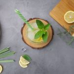 -In a blender jug,add lemon,fresh basil leaves,lemon grass,prepared green tea,honey & blend well.