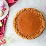 Drizzle melted lotus spread on the edges & sprinkle crushed biscuits.