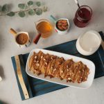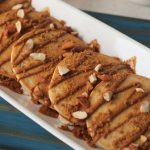 On serving plate,place lotus pancakes,drizzle lotus spread,sprinkle crushed caramel biscuit,almonds & serve!