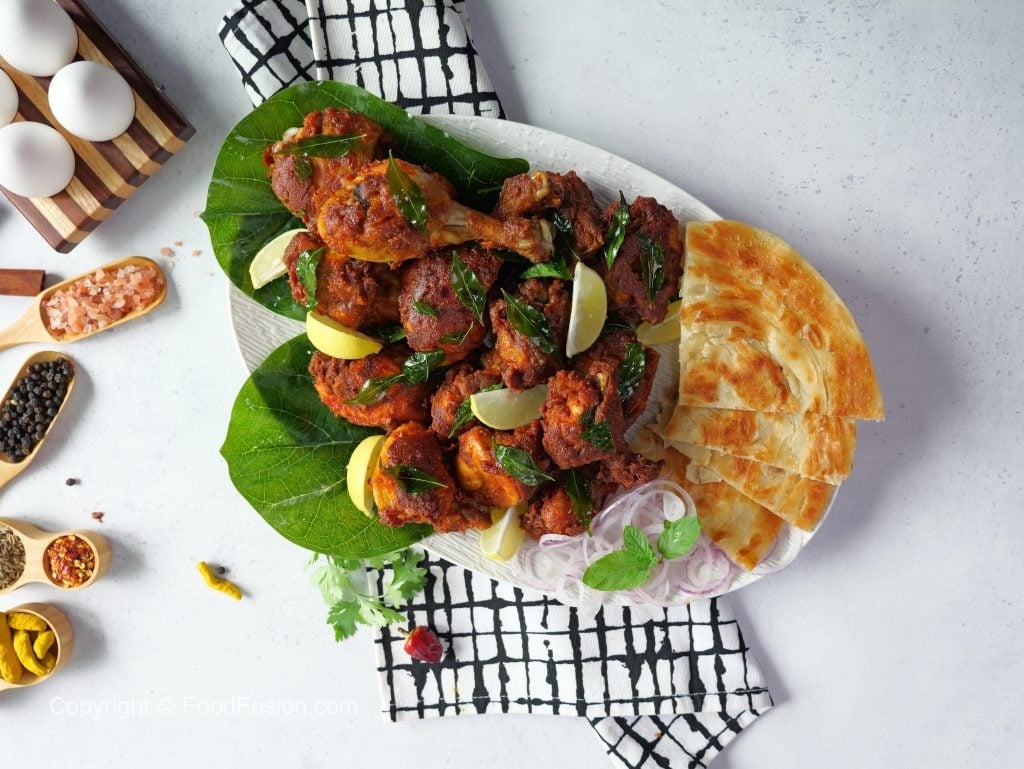 -Onion rings,lemon aur paratha ka saath serve karein!