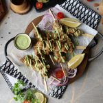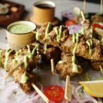 Thread marinated mutton on wooden skewers (makes 11-12).