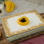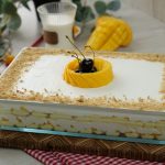 whole wheat biscuits on top then cover with a layer of mango cream whipped,mango slices,olper’s cream whipped,spread evenly & refrigerate until chilled.