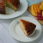 8 x 8 inch baking pan mein caramelized cheeni dal ker mango slices laga lein & side per rakh dein.