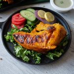In a bowl,add yogurt,ginger garlic paste,red chilli powder,coriander powder,turmeric powder,cumin powder,salt,garam masala powder,yellow food color,lemon juice & whisk well.