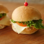 On mini burger bun,add chicken mixture,place cheese slice & tomato slice,lettuce leaf and place another bun on top.