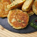 -In a frying pan,heat cooking oil,pipe out prepared mixture & flatten with the help of greased spoon & fry pancakes from both sides on low flame until golden brown.