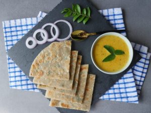 -Heat griddle & fry paratha on medium flame from both sides with clarified butter (makes 5).