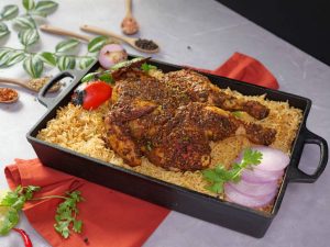 Grinder mein hara pyaz ka safeed hissa,lehsan paste,zeera powder,haldee powder,namak,paprika powder,lal mirch powder,lemon juice aur olive oil dal ker ache tarhan grind ker lein.