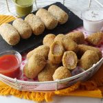-Now place fried sausage,cover properly with potato mixture & make croquettes of equal sizes.