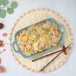-Add vinegar,soy sauce,spring onion leaves,egg omelette,mix well & serve!