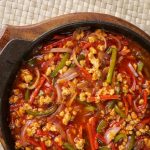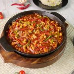 -Heat sizzler pan,add qeema manchurian & serve with fried rice!