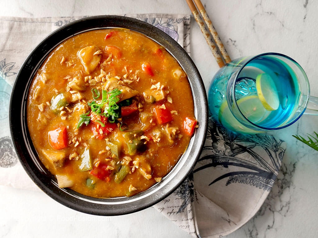 Garnish with reserved fried garlic,green onion leaves & serve with boiled rice.