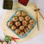 -Drizzle dipping sauce,garlic chilli oil,sesame seeds & serve!